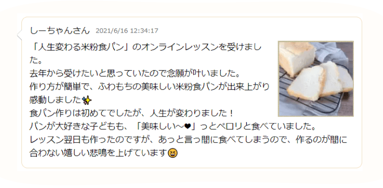 私の人生もこの人生変わる米粉食パンを通し、沢山の人に出会い、沢山の経験をし、人生が変わる体験を日々しています。