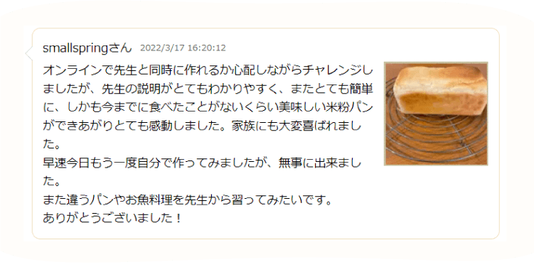 レッスン後に即、自宅でまた復習できる点でもオンラインレッスンがおすすめです。どちらのレッスンもグルテンフリーについての座学も行いますのでグルテンが身体に及ぼす影響についてなどについても学ぶ事が出来ます。